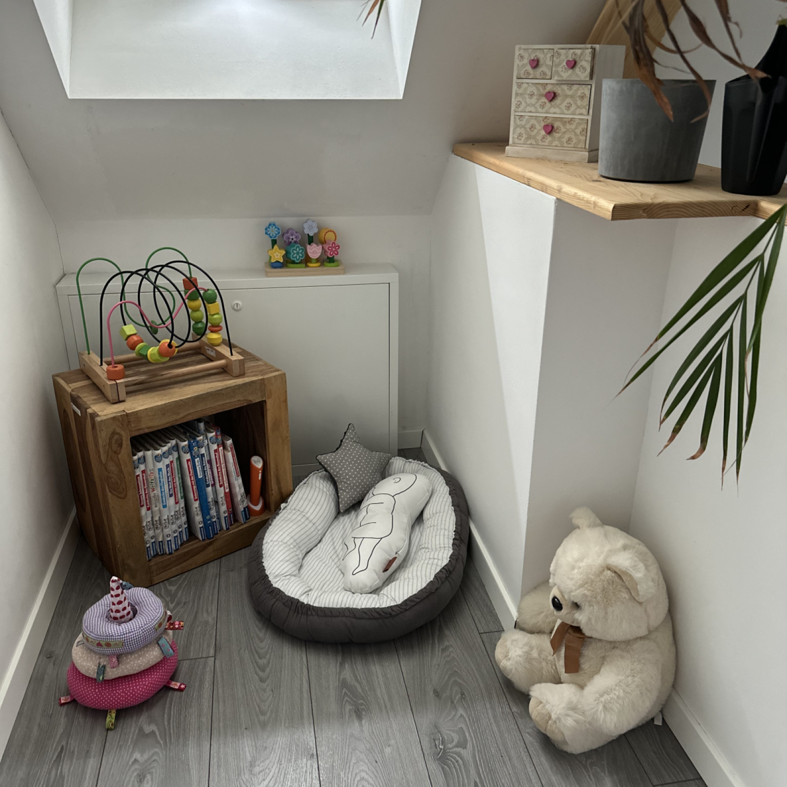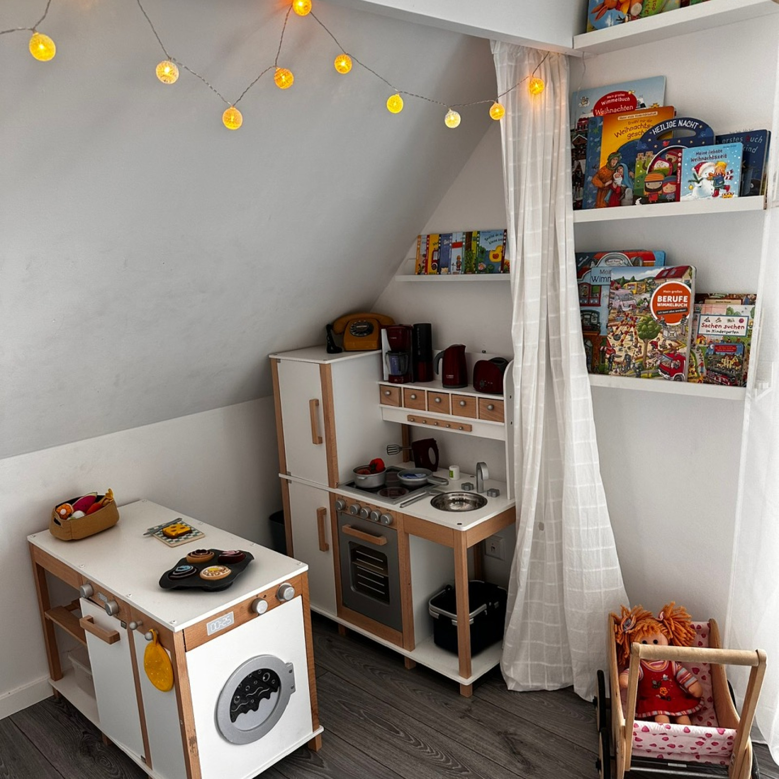 Unser Haus hat 130 qm auf 2 Etagen. Im Obergeschoss steht ein separates Spielzimmer sowie ein Schlafraum zur Verfügung.