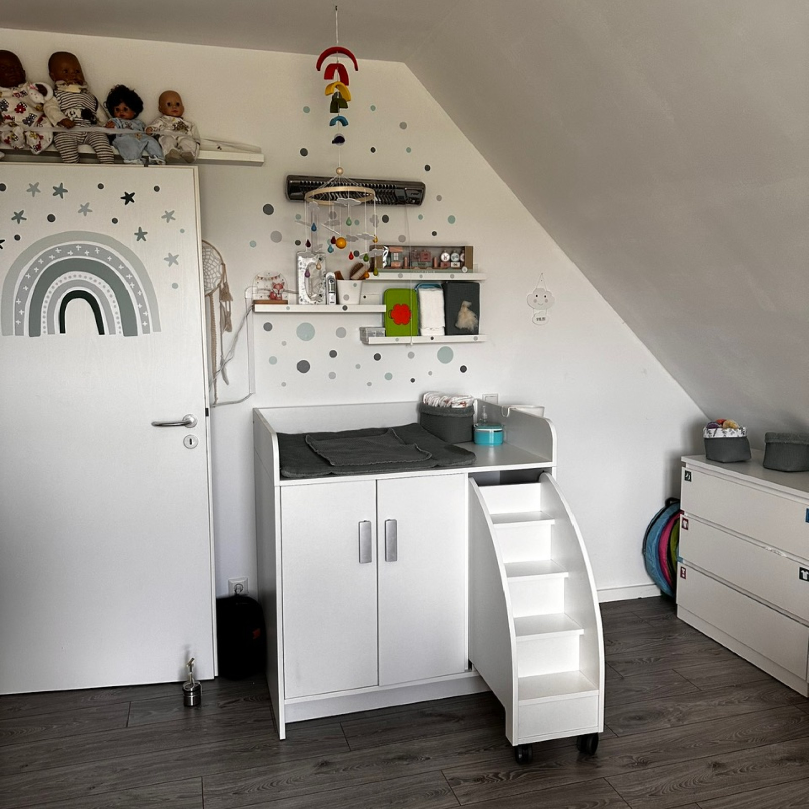 Wickeltisch mit Treppe zum selbständigen drauf setzen.